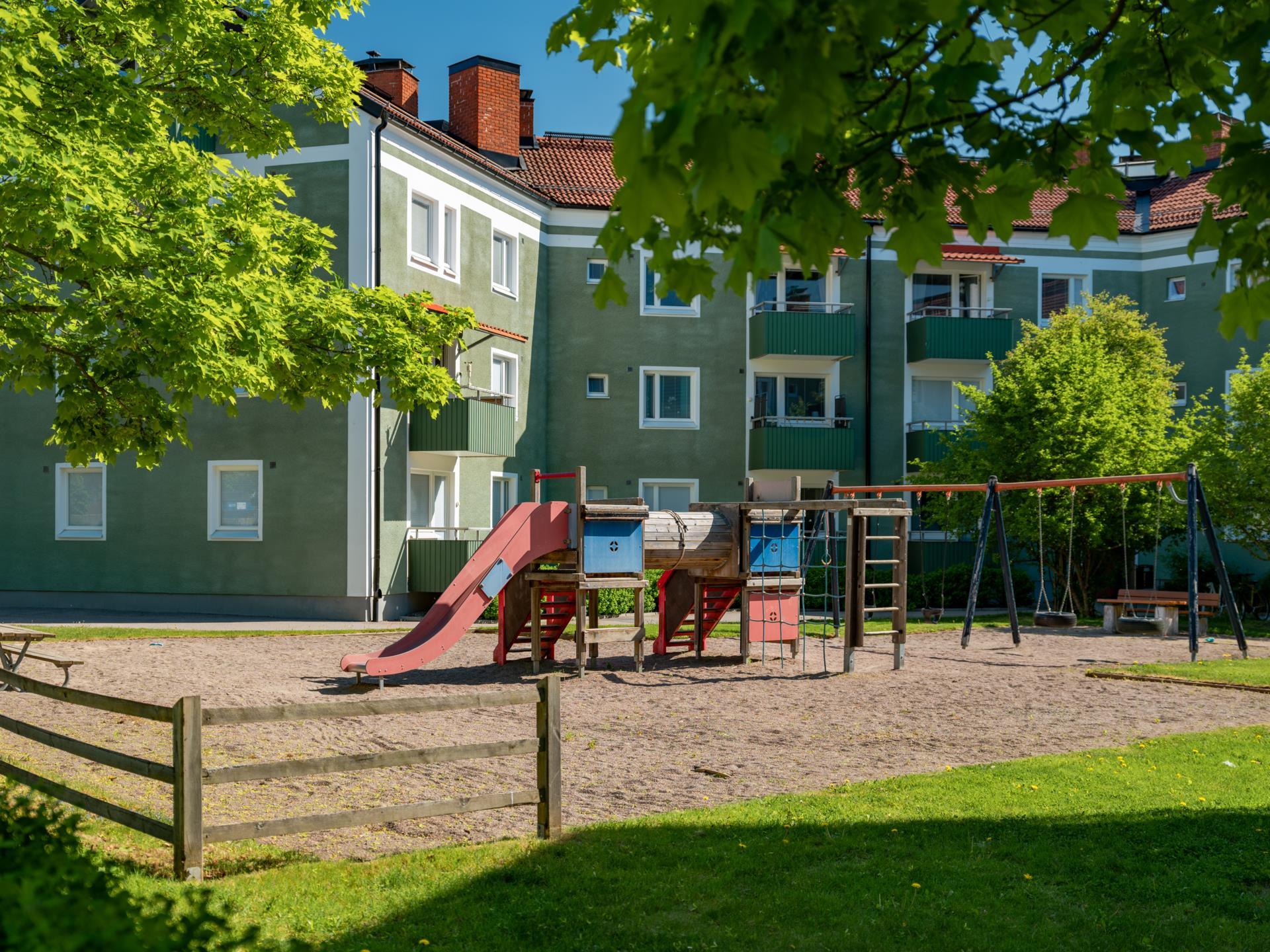Runby erbjuder en rofylld miljö med trygga kvarter, lekplatser och gröna parker som gör det lätt för barn att leka och växa.