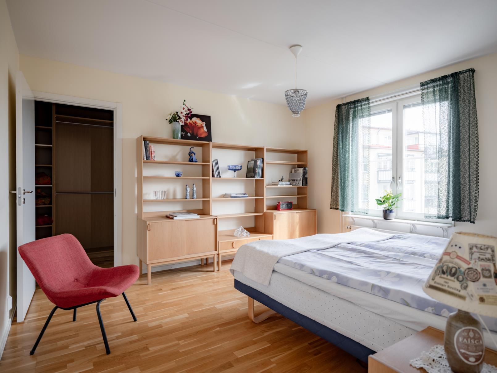 Högt upp i huset, med ett fritt och insynsskyddat läge, väntar denna harmoniska och ljusa trerummare om 78 kvadratmeter – ett hem som bjuder rymd och genomtänkt funktionalitet. Den generösa planlösningen kombinerar sociala ytor med privata rum på ett sätt som känns både hemtrevligt och stilrent. Fint ljusinsläpp, parkettgolv i samtliga rum och sobra färgval skapar ett tidlöst uttryck. Den inglasade balkongen vetter lugnt mot föreningens innergård och blir en naturlig förlängning av hemmet under årets varmare månader.