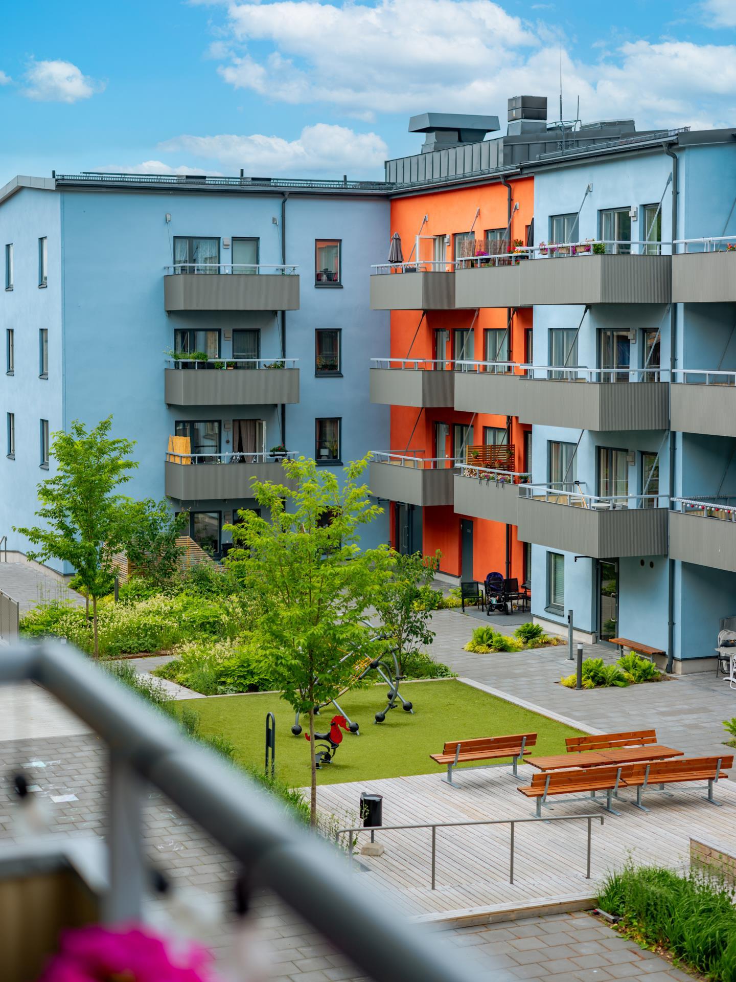 Till varje bostad hör ett praktiskt källarförråd, och i huset finns hiss, cykelrum och barnvagnsförråd. Bilen parkerar du enkelt i föreningens garage. Mellan husen finns en gemensam, grönskande innergård med sittplatser, planteringar och lekytor – en naturlig mötesplats för både stora och små. - MarkägareJa