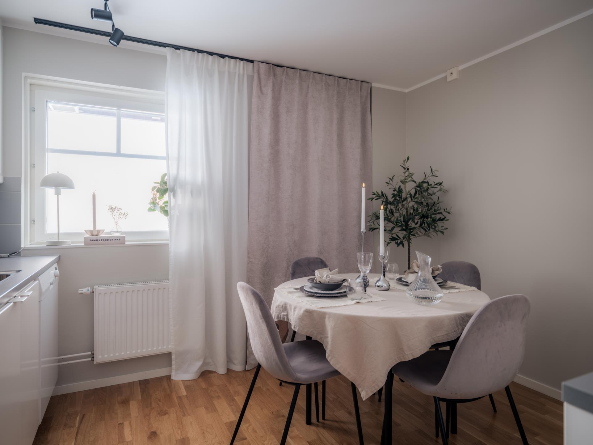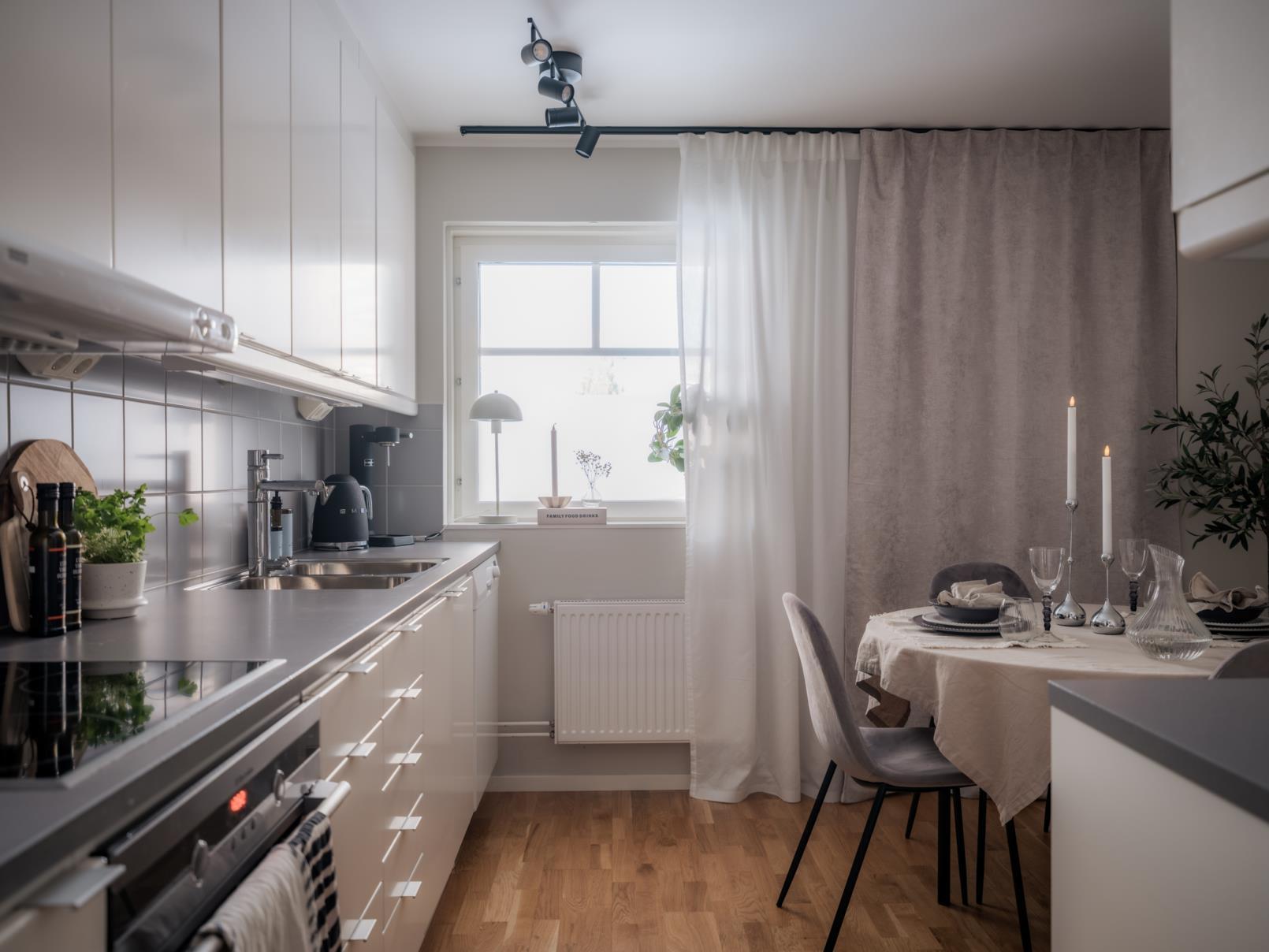 Lägenheten om 57 kvm renoverades 2012 och byggdes om 2024 från en 2:a till en modern 3:a. Resultatet är ett hem där ljus, färg och materialval skapar balans och ro i varje rum. Köket är ljust och luftigt, och vitvarorna är välhållna sedan 2012, vilket ger både stil och funktion. Vardagsrummet ligger centralt mellan de två sovrummen och blir ett naturligt nav för umgänge, mysiga kvällar och avkoppling.